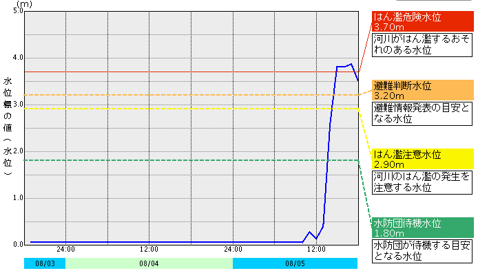 確かに氾濫危険水位を超えてしまっているのが確認できます。