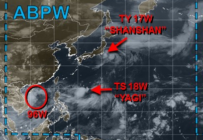 ちなみに、その左下の赤い96Wは24時間以内に台風になると米軍で判断されている熱帯低気圧です。