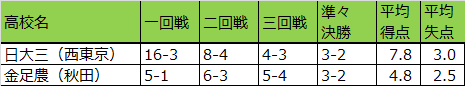 この表は、日大三と金足農の準々決勝までの得失点です。