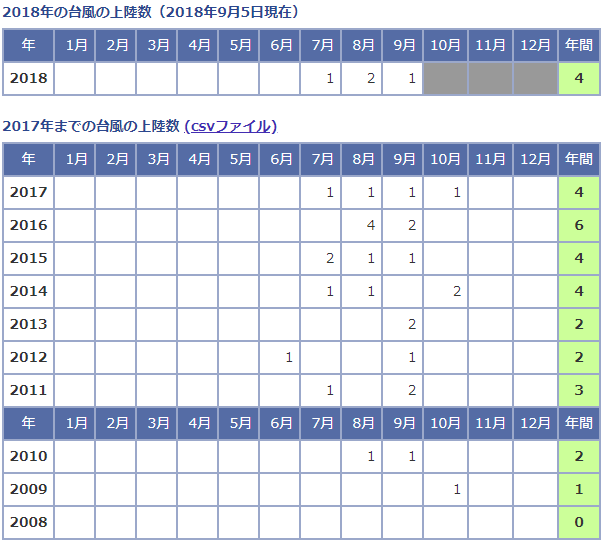 9月の台風上陸数の統計データを見てみると?