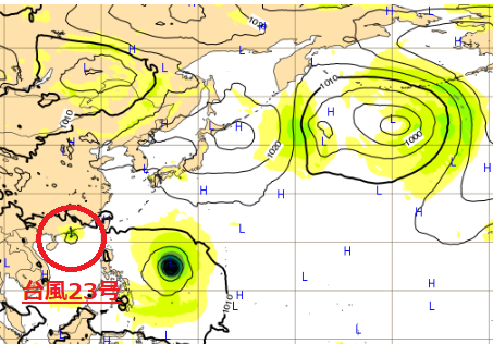 熱帯低気圧TS27Wは90W→TD27→TS27Wと発達してきましたが、さらに勢力を増して台風23号になりました。
