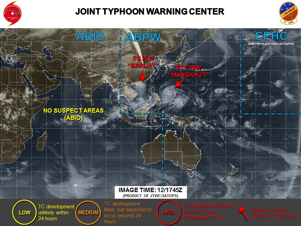現在の米軍最新情報では、TY26W”MANGKHUT”(台風22号)の他に、熱帯低気圧TS27Wが存在する状況となっていました。