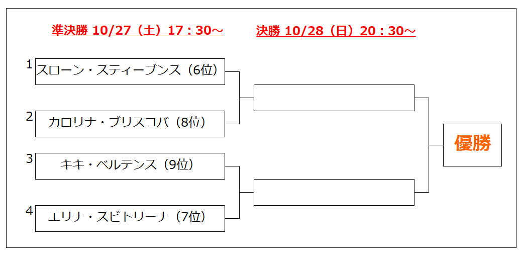 WTAファイナルズのラウンドロビンが終わり、決勝トーナメントのドロー表が発表されました!