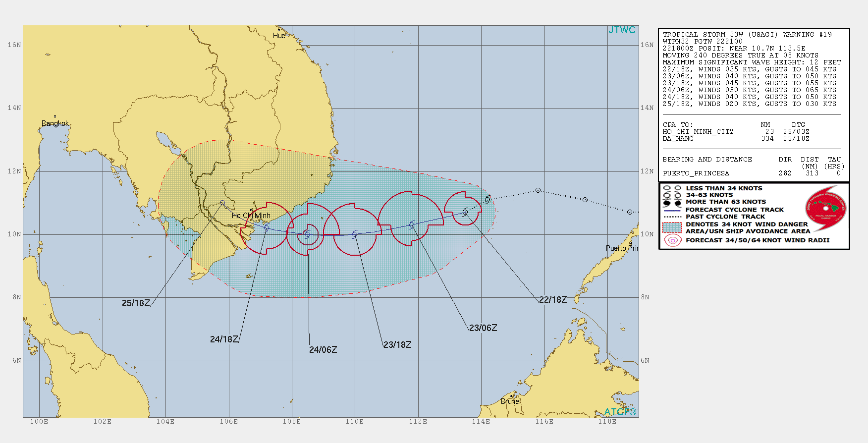 気象庁の進路予想も米軍基地向け情報と同じくベトナム・タイ方面に向かうコースになっていますね。